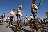 集体踩高跷 一起破纪录[组图]