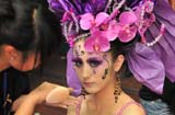 6月16日,参加晚宴时尚化妆比赛的美容师在为模特上妆。当日,天津第九届美发美容节在天津市河东区二宫礼堂举行,230多……