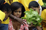 美国第一夫人与小学生白宫菜园里收菜[组图]