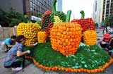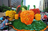 6月16日,在韩国首都首尔市中心,人们用各种颜色的青椒拼出硕大的青椒造型,迎接即将到来的"青椒节"。青椒在韩国被视为健康食品并得到广泛推广,青椒的消费量也逐年增长。新华社/法新……