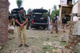 6月16日,在巴基斯坦西北部城市马尔丹,警察在被袭的检查站内警戒。