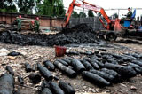 黑龙江牡丹江挖掘出大批侵华日军遗弃炮弹[组图]